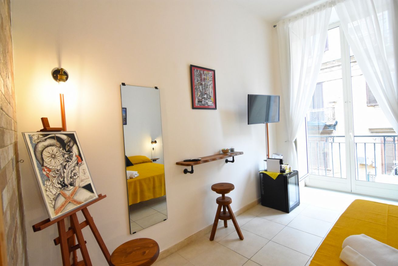 Camera matrimoniale con balcone e bagno privato con combinazione doccia/vasca. Smart tv full HD, minibar, aria condizionata, armadio.