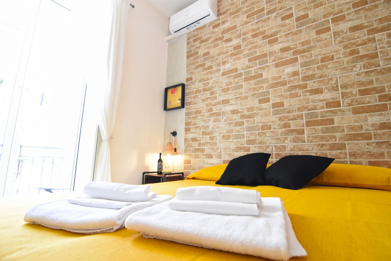 Ampia e silenziosa camera con balcone su cortile interno dotata di armadio, smart tv full HD, minibar, aria condizionata e bagno privato con combinazione doccia/vasca